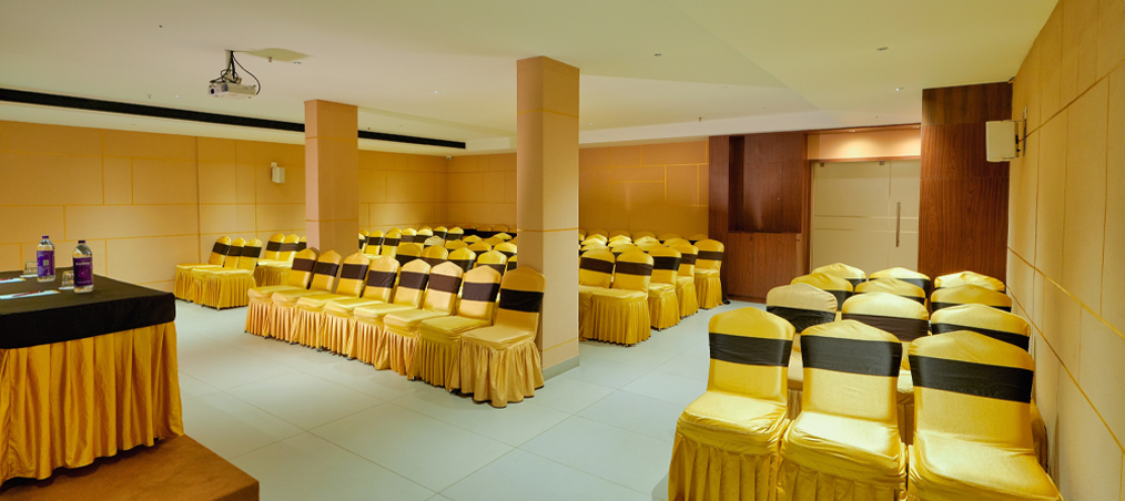 Plan your next event at our banquet hall! With a sprawling area of 1,000 sq. ft., this versatile event venue is perfect for any function or corporate meeting. It can accommodate up to 100 guests. Equipped with air-conditioning, Wi-Fi, projectors and audio-visual equipment, our banquet hall in Wayanad offers an elegant backdrop for any gathering, ensuring your event is both impressive and unforgettable.